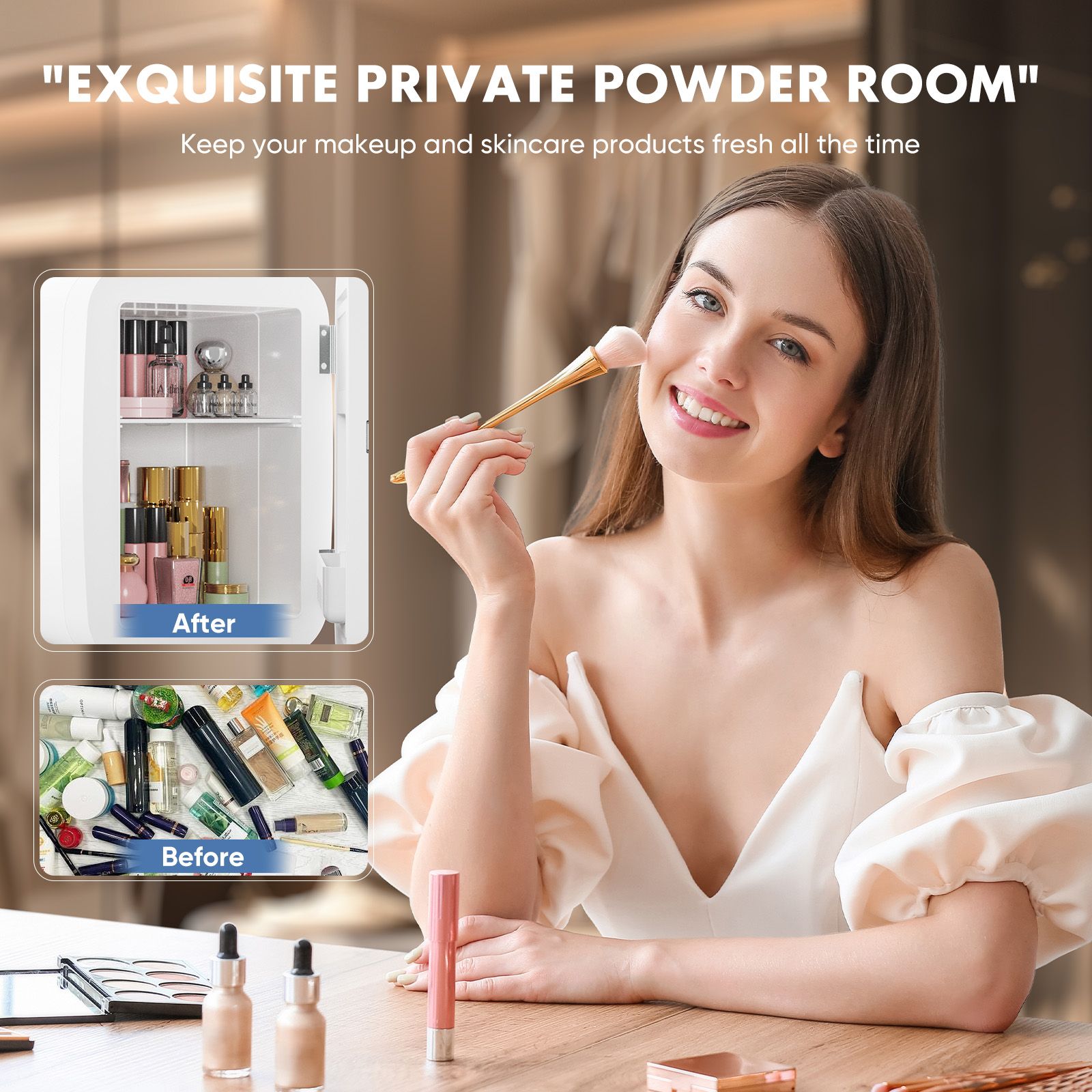 MULTIFUNCTION SMALL FRIDGE: This mini refrigerator is ideal for storing lunch, drinks, breast milk, cosmetics, and skincare products. It's versatile and practical, making it a must-have for any home, office, dormitory, or on-the-go travel situation.