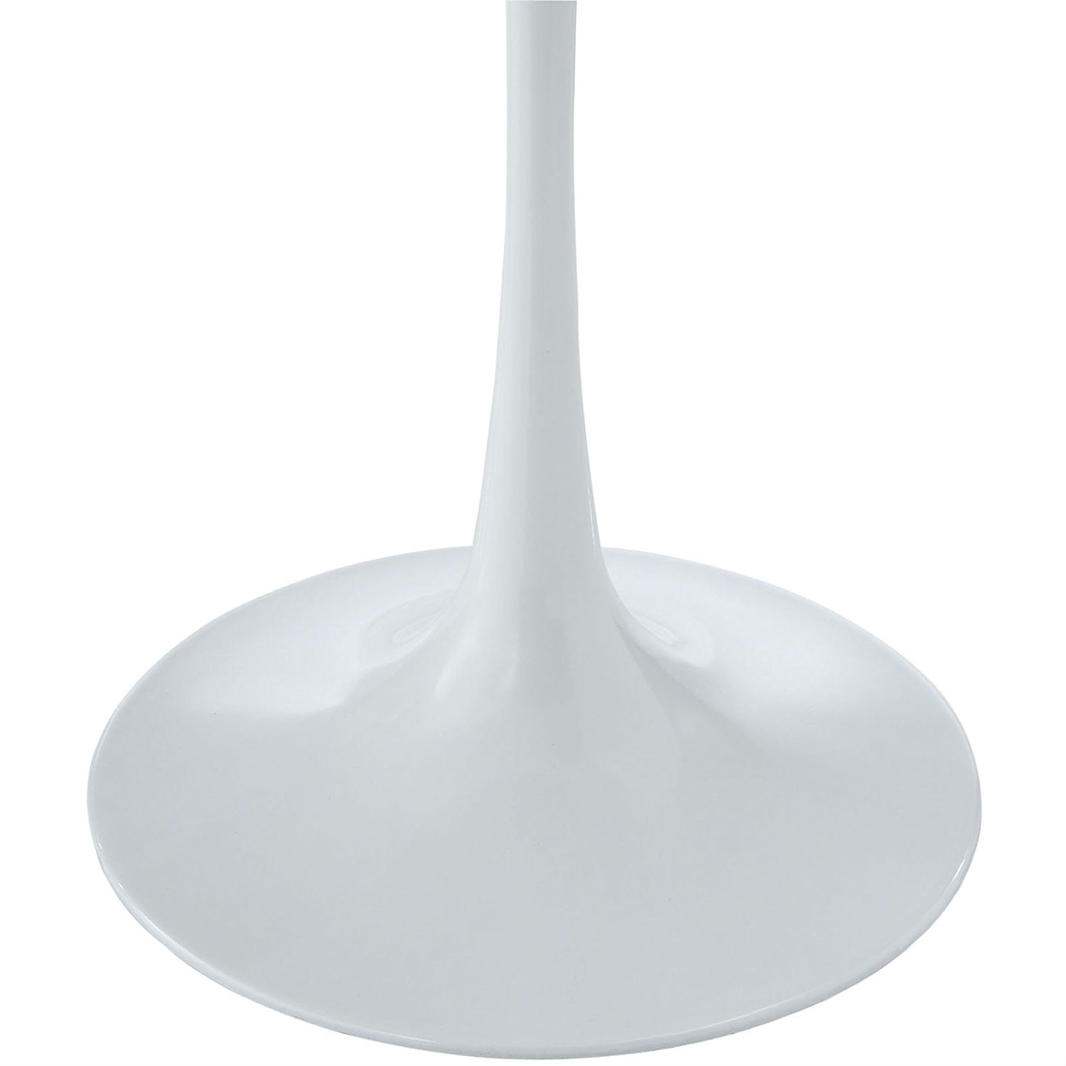Reflecting a seamless organic shape and timeless form, this Mid Century Modern Classic 20-inch Round Side Dining Table in White has become a symbol of modernism for over the past 60 years. Before its release, homes were filled with clunky remnants of an industrial age long gone by. But in order to advance into the new world, homes first had to transition from the traditional square table, into a piece that connoted progress. The cast aluminum base and dimensions are true to the original specifications, while the table’s circular top, and tapered base, are carefully lacquered with a chip resistant finish.