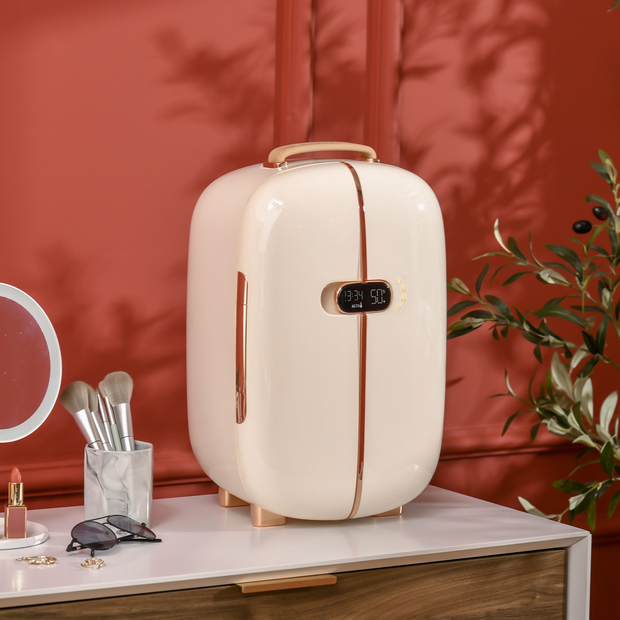 Take It with You: Whether you place it at the bedside, vanity, or desk, your space will be instantly enhanced with this mini skincare fridge. The handle makes it easy to carry when needed.