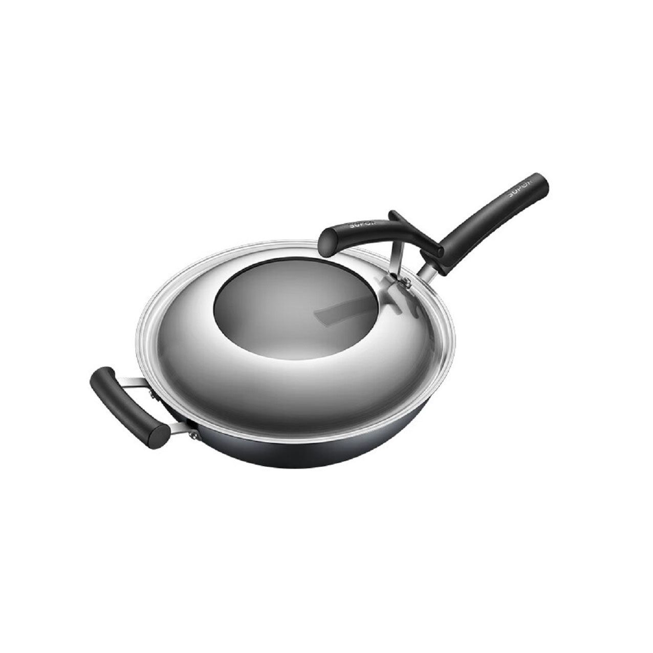 Precision Iron Uncoated Stainless Steel 32cm Wok with Standing Lid for Gas