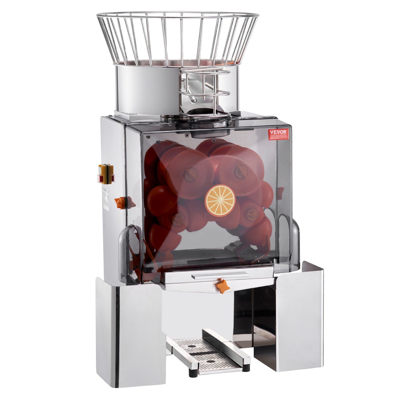 The juicing ball diameter of this commercial orange juicer has been upgraded to 76 mm/2.99 inch, resulting in improved juice yield and faster operation.