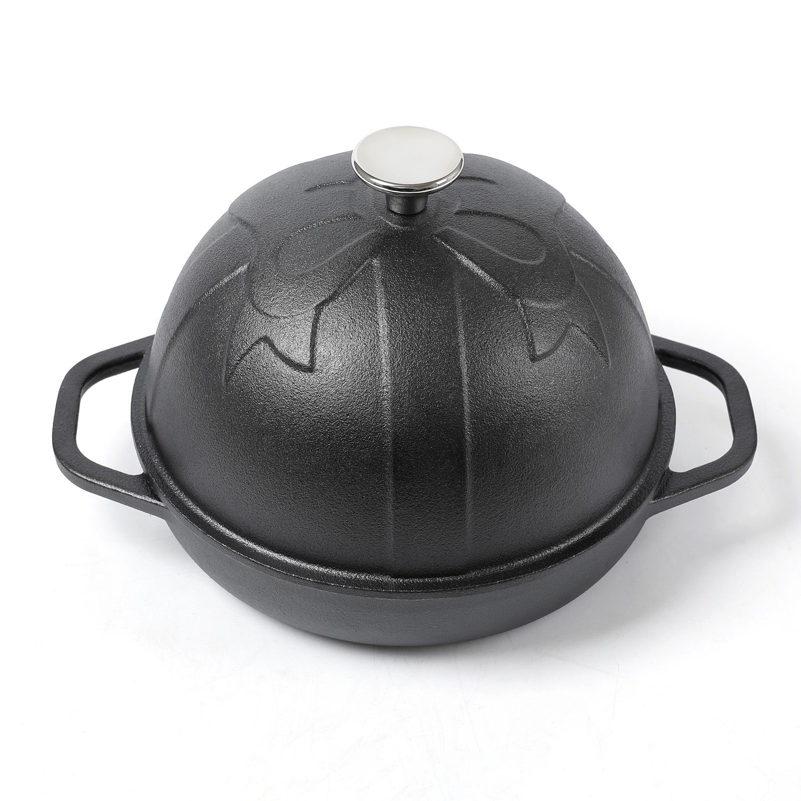 Say goodbye to your traditional pans. You can expect crispy crusts and moist interiors that rival any bakery using the HAWOK Bread Cloche. Its entire body is designed with cast iron and seasoned with vegetable oil. The cast iron delivers superior and even heats distribution. Its tight-fitting lid effectively seals in moisture and flavor and creates a thick, crispy crust and a light, airy inside. The lid features stainless steel knobs that are safe at all oven temperatures, making it easy to move. The low-profile base has raised ridges for even browning and marks the loaf with the lollipop. It can also be used as a skillet. In addition, you will receive two ergonomic ring handles that provide a comfortable, safe grip and ease of movement from kitchen to table. After finishing cooking, hand wash with warm water and dry thoroughly with a towel. This HAWOK bread cloche is the perfect present for weddings, housewarmings, birthdays, holidays, and more.